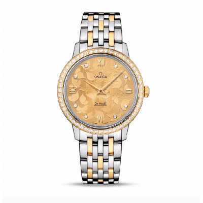 OMEGA/欧米茄 碟飞系列 女士间金表链金色表盘石英表手表腕表女表 424.25.33.60.58.001
