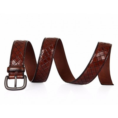 【情人节礼物】Bottega Veneta/葆蝶家 BV 男士棕色小牛皮经典编织工艺皮带针扣式皮带腰带 261362-VQ240-2040